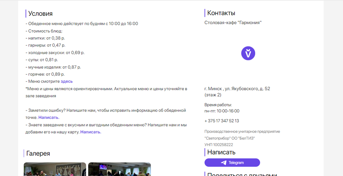 Также на платформе можно сравнить цены на питание в заведениях общепита: