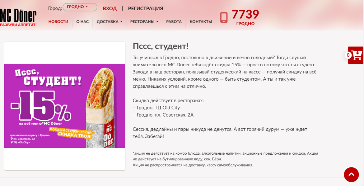 - Мониторить акции для студентов. Некоторые заведения в городе предоставляют скидки при предъявлении студенческого билета. Чаще всего, это заведения, ориентированные на молодёжь: бургерные, кофейни и рестораны быстрого питания. Скидки могут быть постоянные или сезонные – в рамка акции.