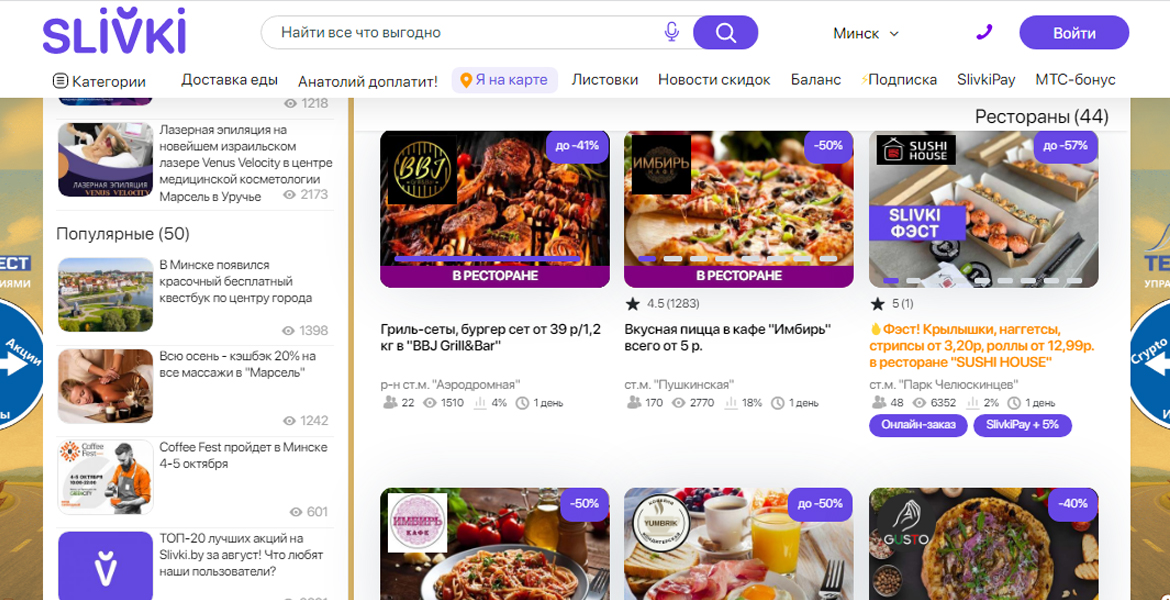 - Отслеживают промокоды на скидки. Многие кафе и рестораны быстрого питания предлагают скидки через специальные приложения или сайты. Найти промокоды со скидками на еду и развлечения можно на Slivki.by – популярной платформе в Беларуси. Достаточно просто выбрать подходящее предложение, скопировать промокод и использовать его при оформлении заказа.