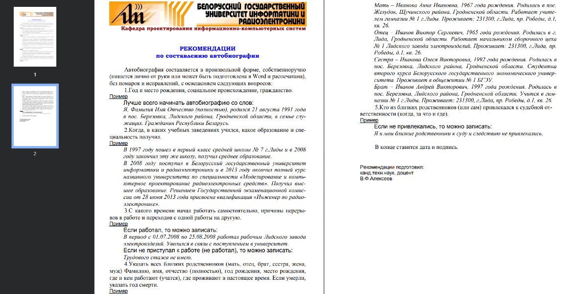 Пример автобиографии при поступлении можно попросить у членов приемной комиссии или найти на сайте заведения.