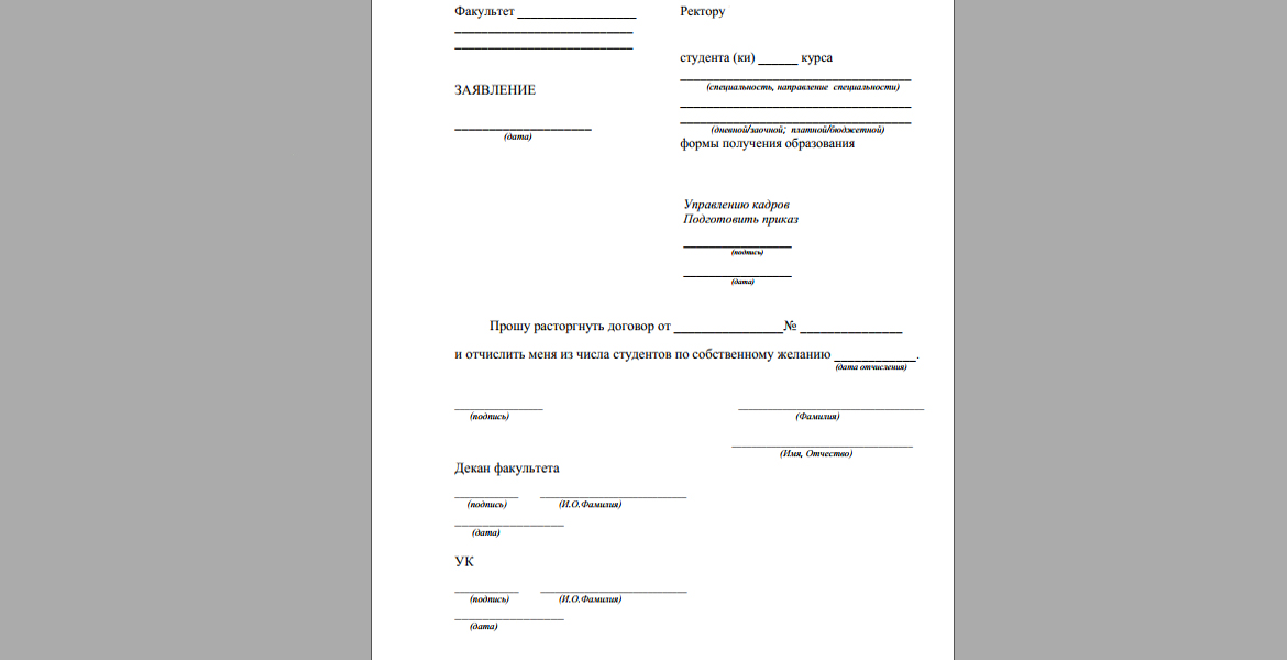 Образцы заявлений в белорусских университетах почти не отличаются. Но иногда заведения просят указать основания для отчисления из вуза по собственному желанию: например, прописать семейные обстоятельства или другие причины.