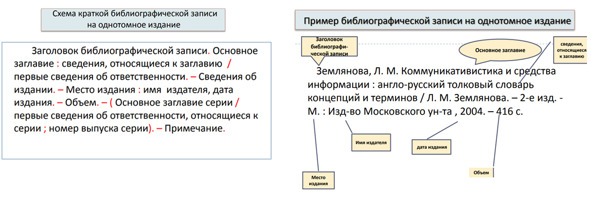 Согласно стандартам, библиографическая запись состоит из обязательных элементов: